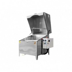 Destinată spălării şi degresării complet automatizate a pieselor de dimensiune mijlocie şi mare, atât în cursul procesului de fabricaţie, cât şi pentru întreţinere. Dotată cu coș de spălare rotativ fabricat din oțel inoxidabil, diametrul coșului: 910 mm, capacitate de încărcare a coșului 200 Kg, doua pompe cu montaj orizontal.
